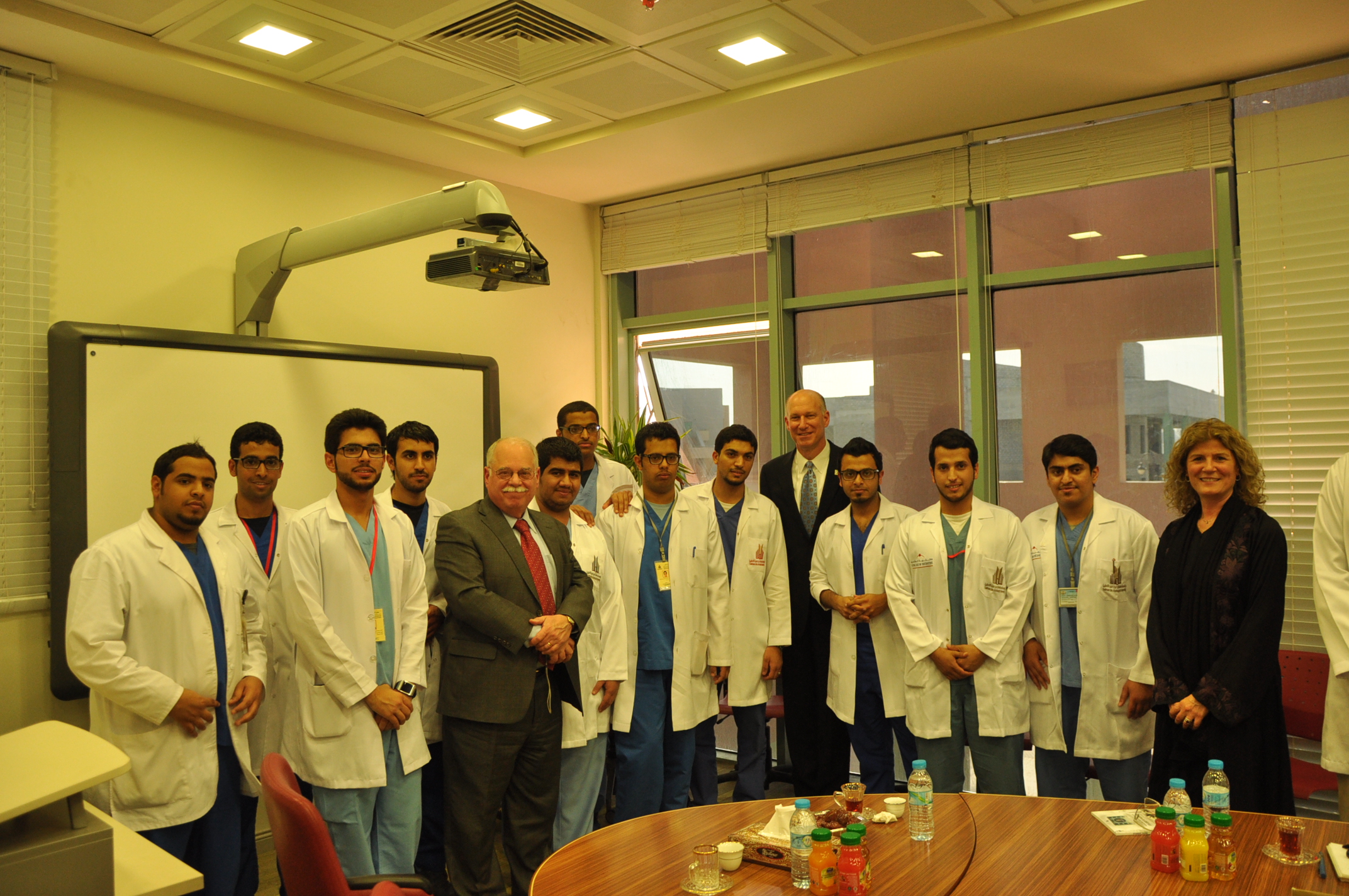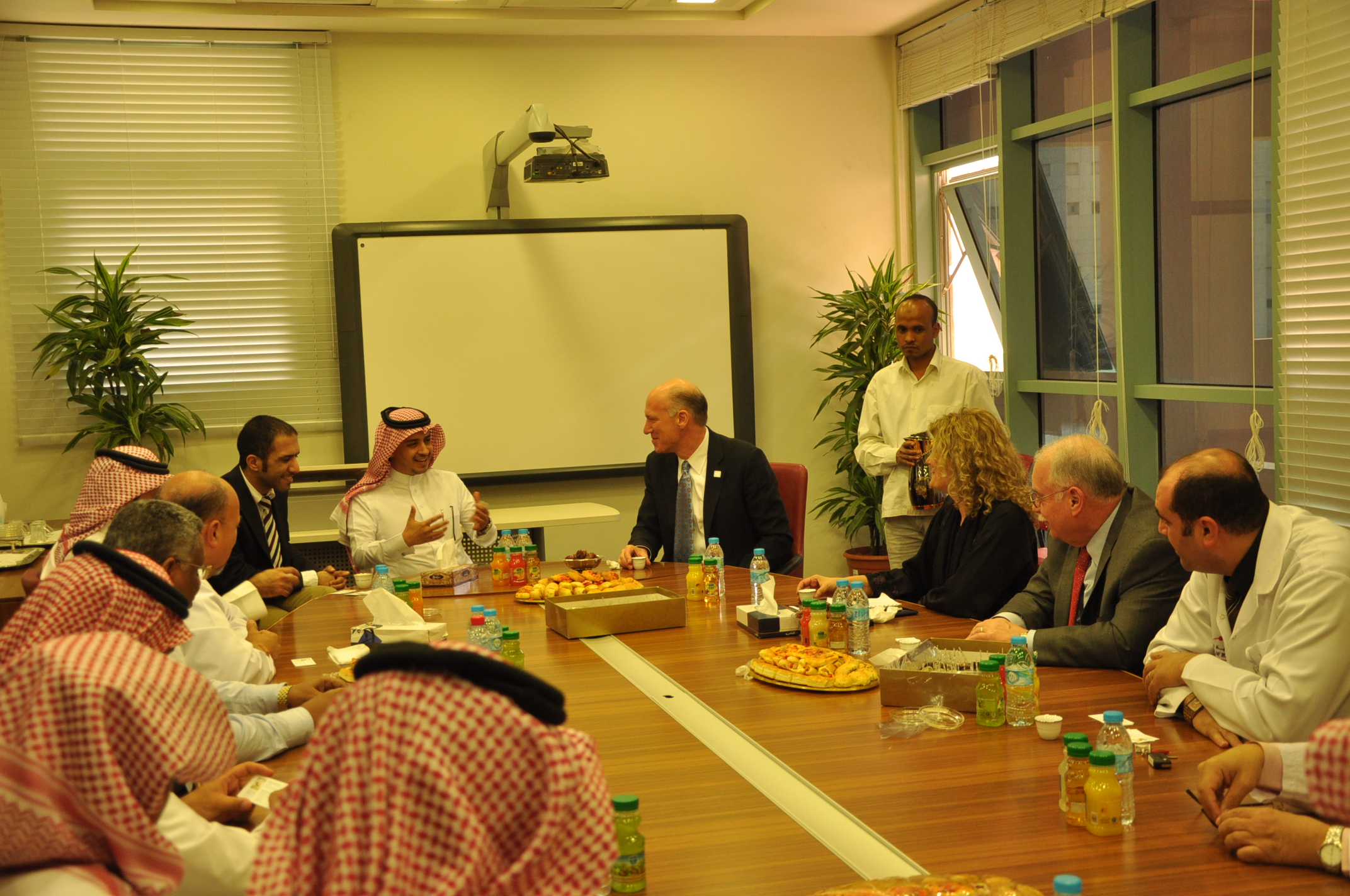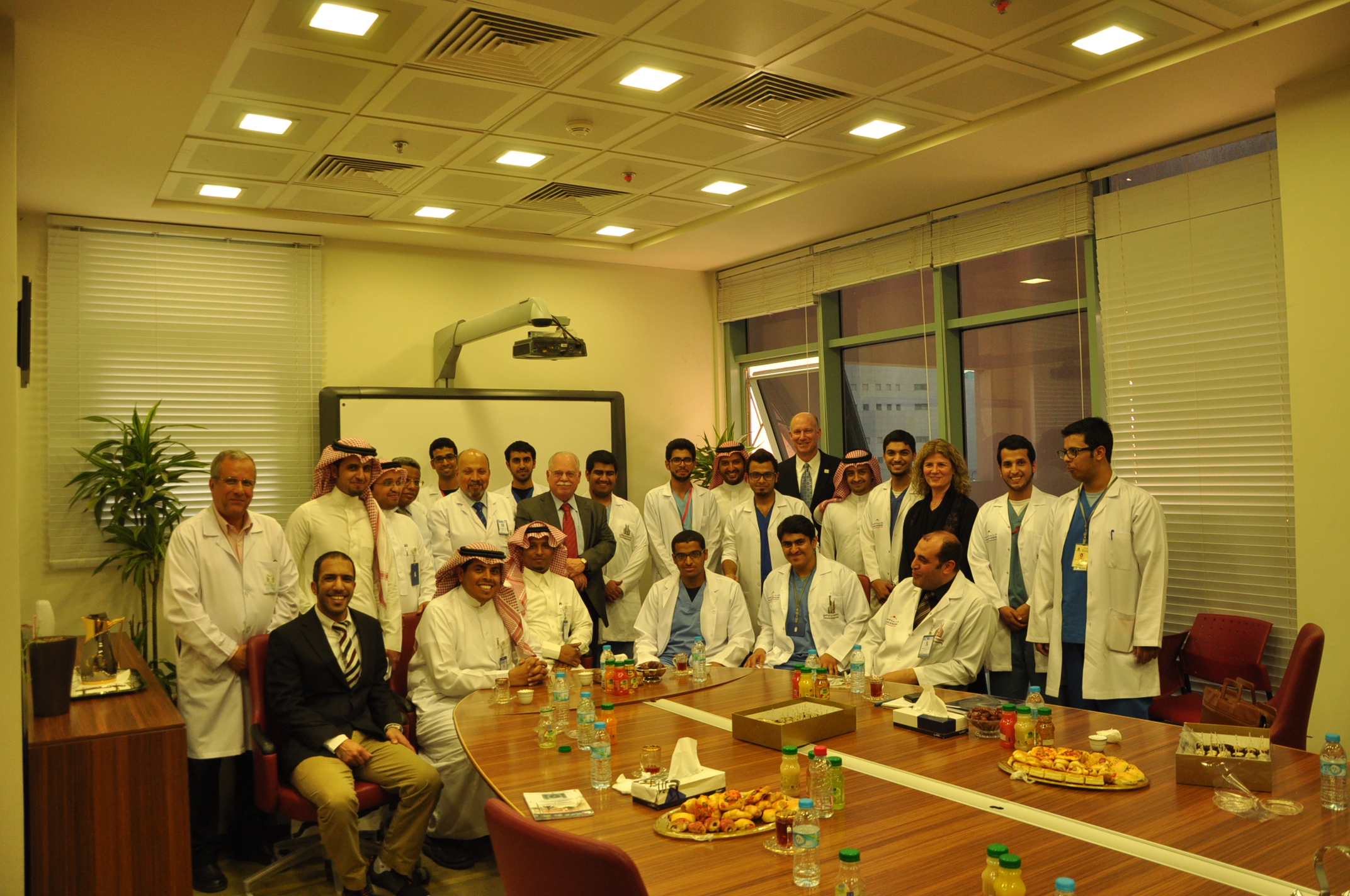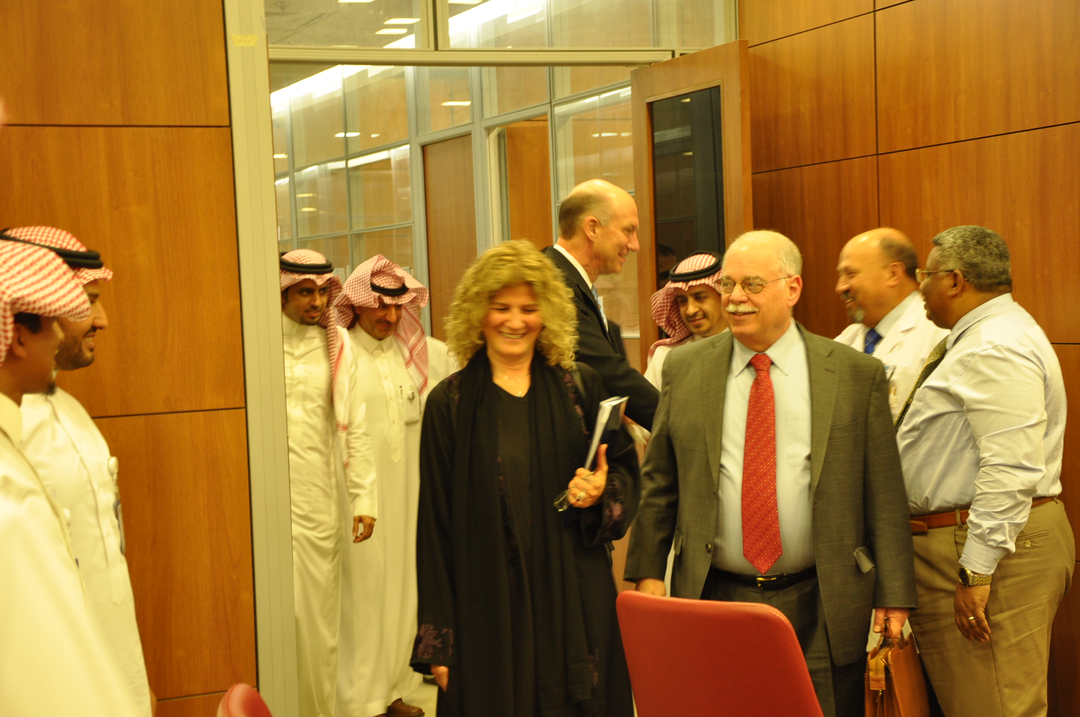 وقد كان عميد كلية الطب الدكتور عبدالرحمن الذياب ووكلاء الكلية و عدد من أعضاء هيئة التدريس بكلية الطب البشري في استقبال الوفد الأميركي برئاسة الدكتور جيفري اكمان نائب رئيس جامعة جورج واشنطن للشئون الصحية وعميد كلية الطب و الدكتورة هدى إياس العميد المشارك و مديرة العلاقات الدولية والدكتور ستانلي نول المدير الطبي والمشرف على التعاون الدولي. هذا وقد أعرب الدكتوراكمان عن سعادته وشكره وامتنانه لحفاوة الإستقبال حيث أنها تعتبر الزيارة الأولى له للمملكة العربية السعودية.