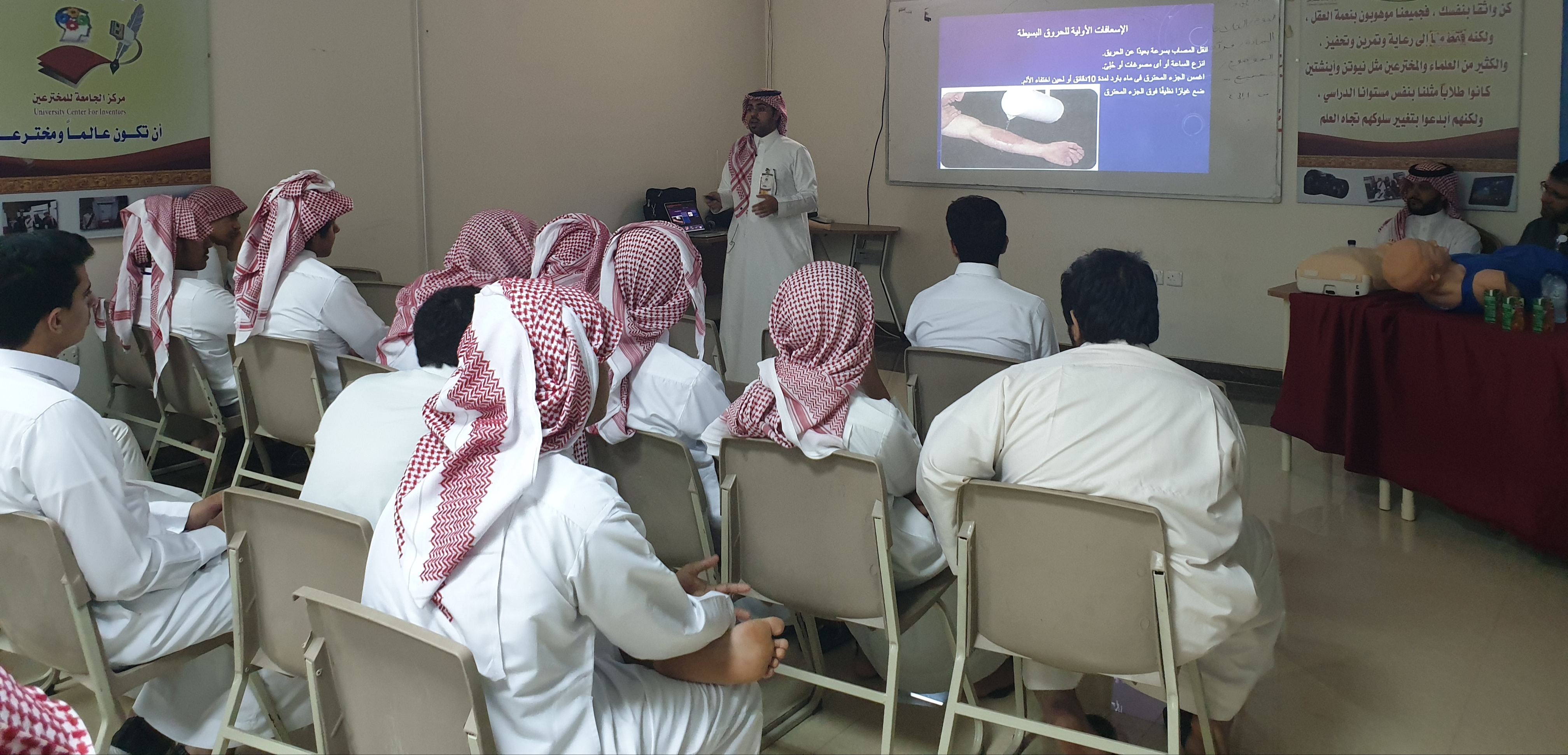 عقدت وحدة التثقيف الصحي وخدمة المجتمع بكلية الطب بجامعة الأمير سطام بن عبد العزيز بالخرج دورة للإسعافات الأولية لطلاب مدارس الجامعة الأهلية بالخرج وذلك يوم الاثنين الموافق 4-3-1440 هـ. وقد قدم الدورة كل من الدكتور/ أحمد أبو دنيا والدكتور/ محمد القحطاني والدكتور/ طلال المخلفي.وتأتي هذه الدورة ضمن جهود كلية الطب لنشر المعلومة الطبية الصحية بين أفراد المجتمع حيث تم استعراض أهمية تعلم خطوات الإسعافات الأولية وطريقة تطبيقها في حالات الاختناق والغرق وحالات الحروق واللدغات وغيرها من الحالات الطارئة التي قد تهدد حياة الإنسان. وسوف يتم عقد هذه الدورة في عدة مدارس أخرى بالمحافظة في المستقبل القريب بإذن الله.