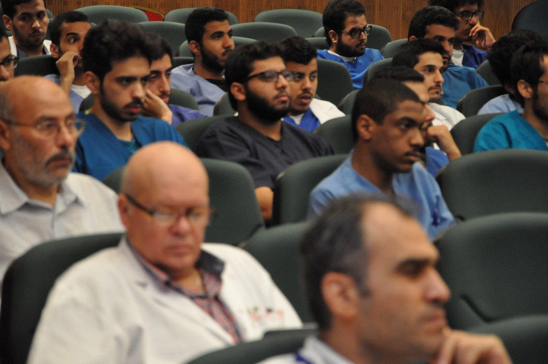 وقد قام بتنظيم الورشة وحدة التعليم الطبي المستمر باشراف من سعادة الدكتور سعد الشهراني وكيل الكلية للدراسات العليا و مشرف الوحدة الدكتور احمد ابو دنيا و بالتعاون مع ادارة كلية الطب والمجلس الطلابي بالكلية. وقد حضر الورشة عدد كبير من اعضاء هيئة التدريس و الاطباء والباحثين من الكليات الصحية بالجامعة و منسوبي القطاعات الصحية المختلفة بمحافظة الخرج بالاضافة الى طلاب الكليات الصحية وتم نقل البث مباشرة عبر الدوائر التلفزيونية لقاعة المحاضرات بالمستشفى الجامعي لاتاحة فرصة الحضور و المشاركة للجانب النسائي من مختلف الكليات الصحية.